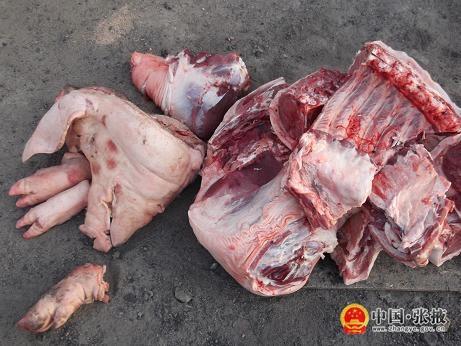 有時在肉案上可以看到花腸(子宮)。死豬肉切開后腿內(nèi)部的大血管,可以擠出黑紅色的血栓來,有的甚至可以看到局部變綠,嗅之有fu敗氣味。